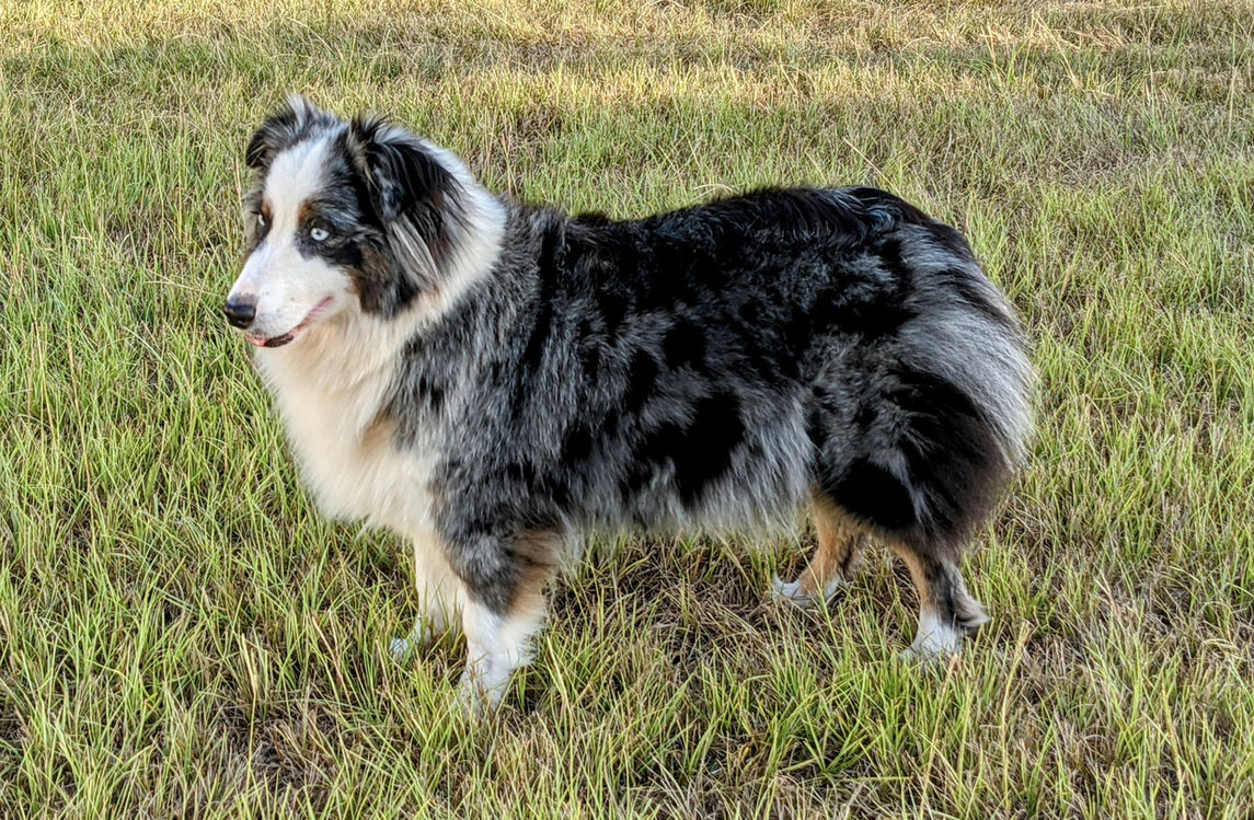 Zoe is our pick of Mia's third and final litter. We are so proud of the dog she has grown into and absolutely love her temperament. Zoe stands about 20 inches and weighs around 50 pounds. She was the star puppy in her obedience training class and continues to outshine everyone! She loves being our running companion and has even competed in various 5K fun runs and Iron Dogs! She has all the qualities we love to see in our Aussies - incredible loyalty, great drive and extremely biddable.